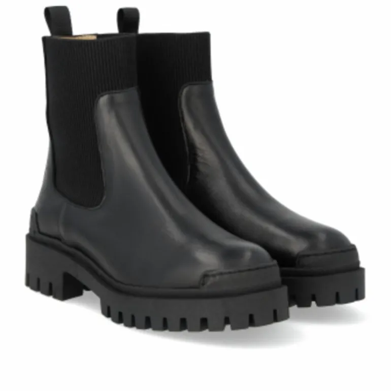 Den meget populære hacker støvle i sort skind fra Angulus, med de smarte grove gummisåler. Støvlen har elastik i begge sider, og en super komfort.