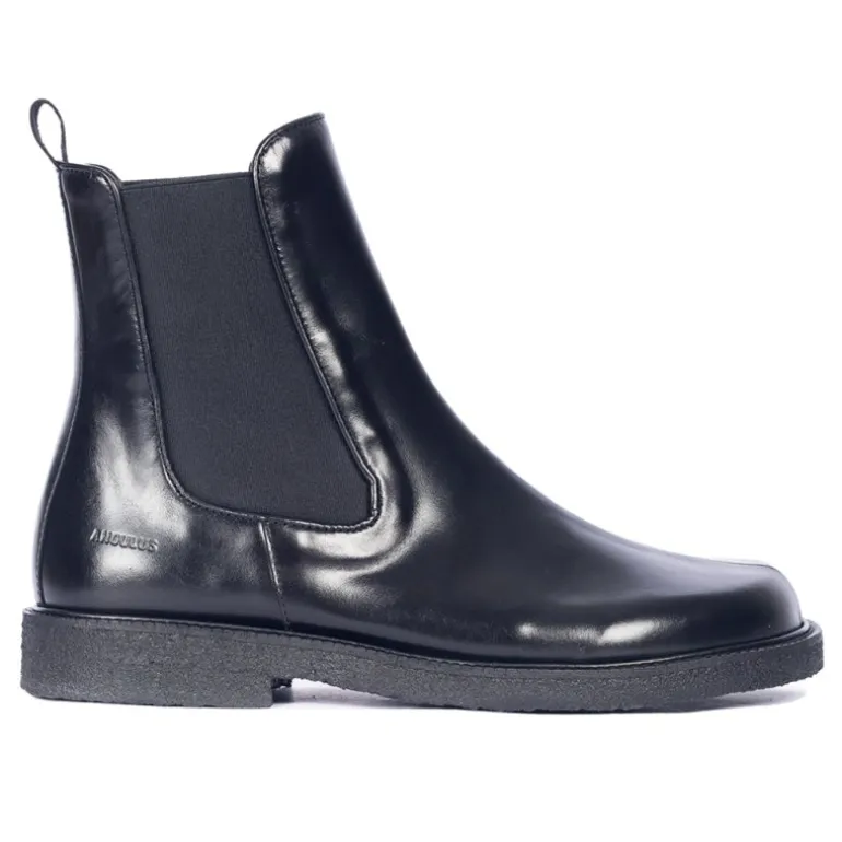 Ankelstøvler fra Angulus i sort skind med bred pasform. Støvlen har elastik i siderne, rågummisål og fine eksklusive detaljer.