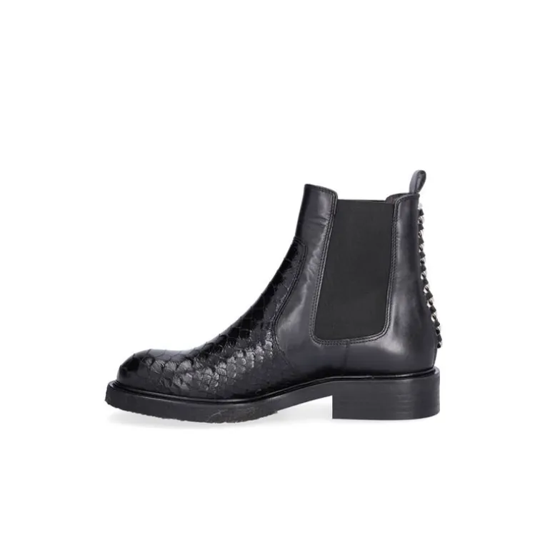 Meget smart og lækker støvle fra Billi Bi, i sort præget skind. Støvlen har elastik i siderne, og en dekorativ sølvkæde bagtil. Giver en super smart effekt, og kan bruges til både hverdag og fest. Støvlen har rågummisål på forreste stykke, hvilket giver en god komfort.