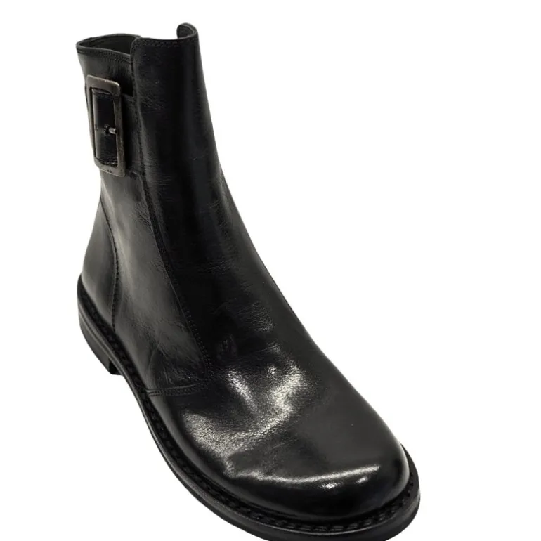 Klassisk støvle fra Bubetti i sort skind med lynlåse på indersiden og spænde på ydersiden. Støvlen er nu blevet lavet på en ny læst, som er lidt bredere. Skindet Bubetti bruger er altid vegetabilsk garvet, og støvlen er håndsyet. Derfor giver samt tilpasser støvlen sig helt perfekt til foden! Sålerne er skind belagt med gummi, og kan altid forsåles. Støvlen slutter flot til benet ved skaftet. Der skal evt bruges skohorn de første par gange man skal i den. En bubetti støvle kan holde helt utrolig mange år.