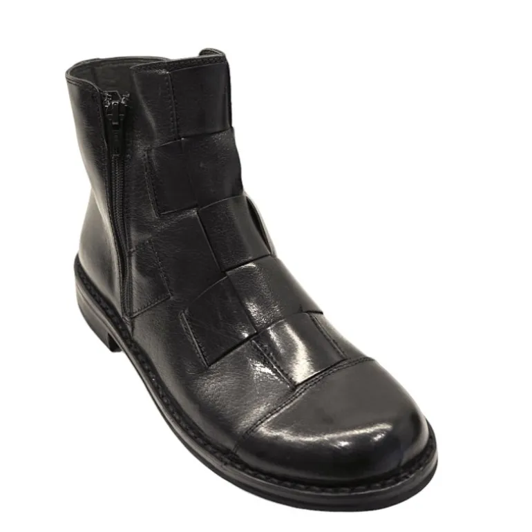 Den populære klassiske bredflettet støvle fra Bubetti, er nu lavet på en ny bredere læst, hvor der er mere plads til fødderne. Støvlen er håndflettet, og har lynlåse i begge sider.