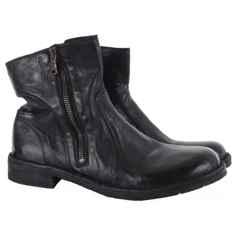 Ekstrem lækker støvle fra Bubetti i sort skind. Skindet er vasket, hvilket gør, at støvlen får et lækkert råt look, og skindet bliver endnu mere blødt og lækkert med tiden. Støvlen har lynlåse i begge sider, med et skindstykke på bagsiden, derfor kan lynlåsen også stå halvt åbent.