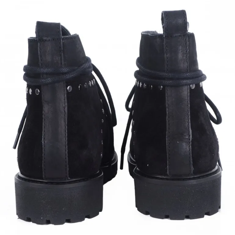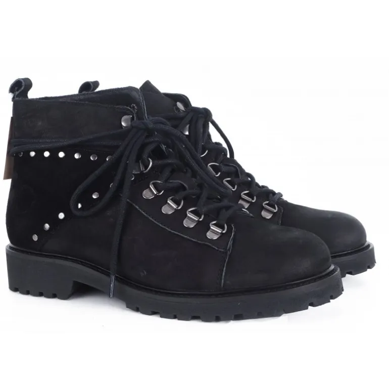 Smart støvle fra Cashott i sort nubuk skind, med 100% ægte uldfoer indvendigt. Støvlen har fine detaljer, snøre op af foden, og nitter i siden. Sålerne er grove gummisåler, som er gode til vinteren.