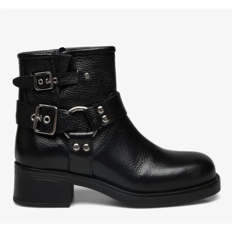 Den populære bikerstøvle fra Pavement i sort skind, nu med uldfoer indvendigt. Bruges både som varm, og smart hverdagsstøvle.