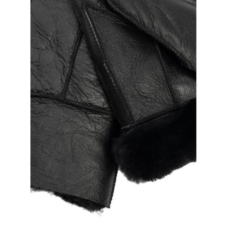 Skønne skindluffer i sort, med pelsfoer indvendigt. Øverste stykke af luffen kan foldes ned og op, så man får en detalje med pelskant