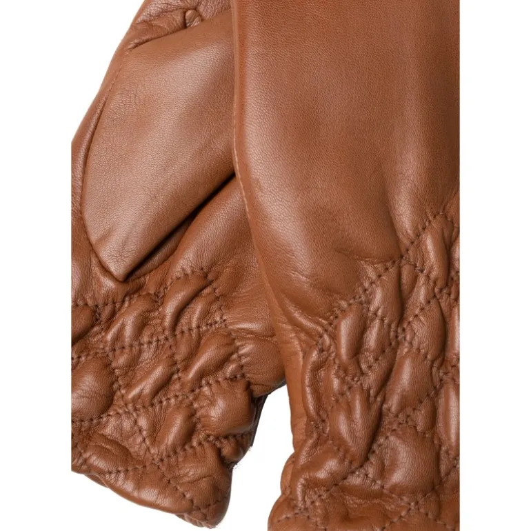 Meget lækre og elegante skind luffer fra RE:DESIGNED i det skønneste bløde læder i cognac skind. Luffen har de fineste detaljer for oven, at lidt creppet skind, der lukker tæt om håndledet. Luffen har fleece foer, og derudover er der touch funktion, så man kan bruge dem på sin smartphone, uden at tage handskerne af.