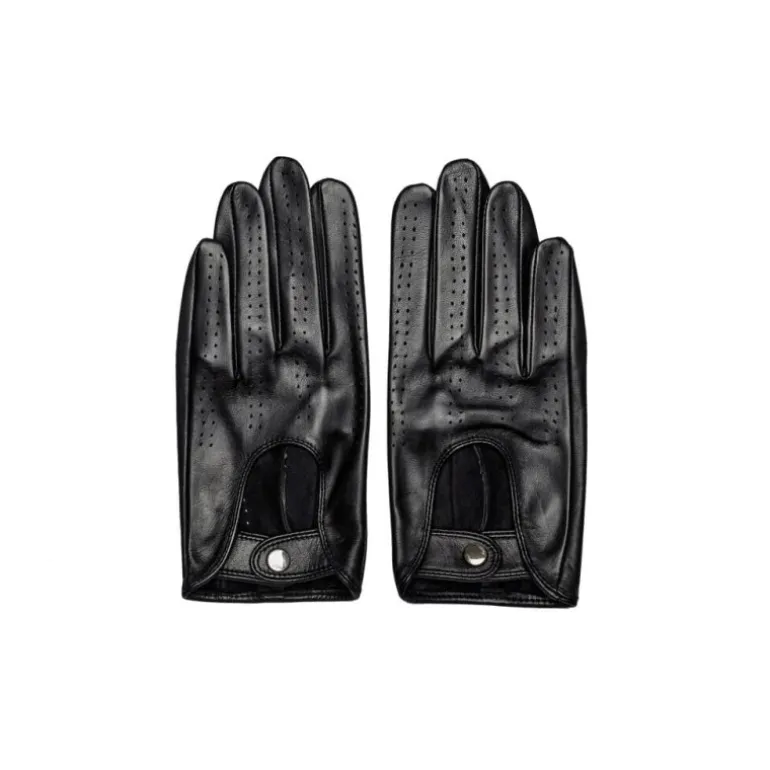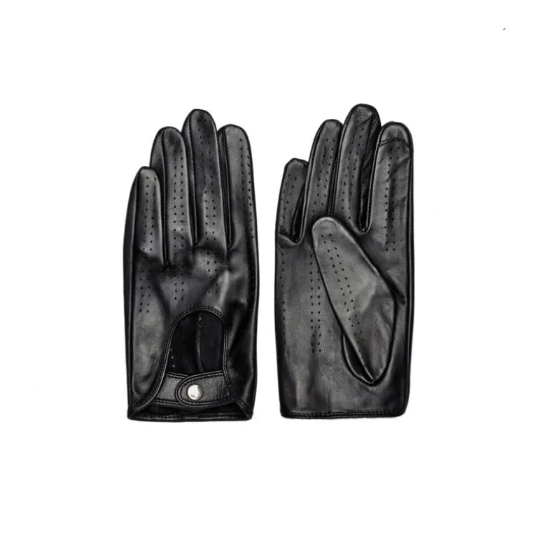 Rigtig smart lille kørehandske i sort skind fra RE:DESIGNED. Handskerne har fine detaljer, en hul ved håndryggen, og lukkes med en lille knap. Super smarte.