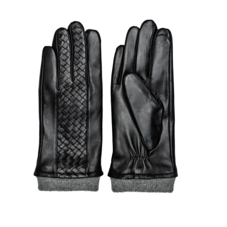 Meget lækre skindhandsker fra RE:DESIGNED i det skønneste bløde læder i sort skind. Handsken har de fineste detaljer. Flettet skind på midten af handsken der kører videre ud på to fingre, og en lille strikdetalje ved afslutningen på håndleddet. Handsken har fleece foer, og derudover er der touch funktion, så man kan bruge dem på sin smartphone, uden at tage handskerne af.