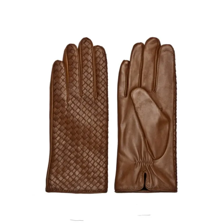 Rigtig flotte og smarte lækre skindhandsker fra RE:DESIGNED i det skønneste bløde læder i cognac skind. Handsken er i flettet skind, og giver den fedeste detalje, og har fleece foer. Derudover er der touch funktion, så man kan bruge dem på sin smartphone, uden at tage handskerne af.