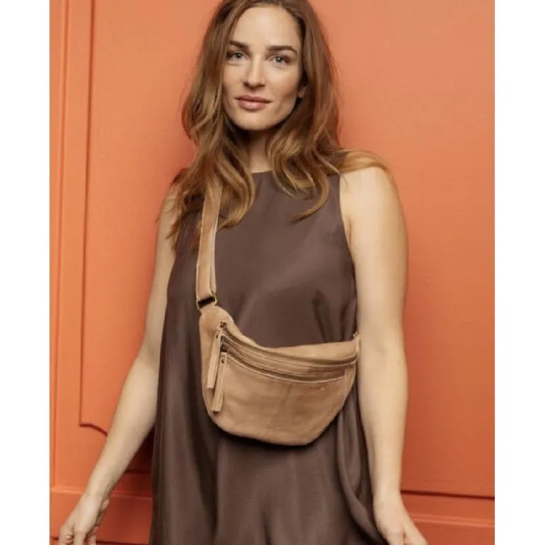 Super lækker og rå Bumbag taske fra RE:DESIGNED i en flot taupe skind. Tasken har to rum med lynlåse.