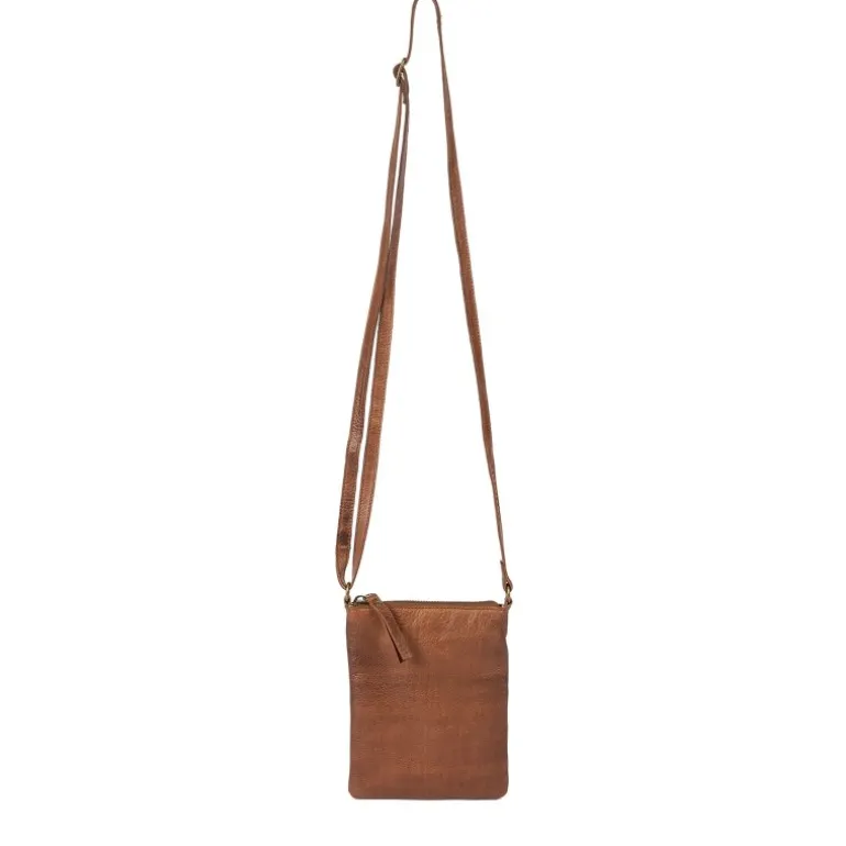 Klassisk mobiltaske i flot brunt skind, med plads til lidt forskellige.