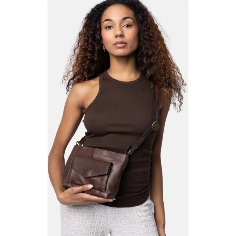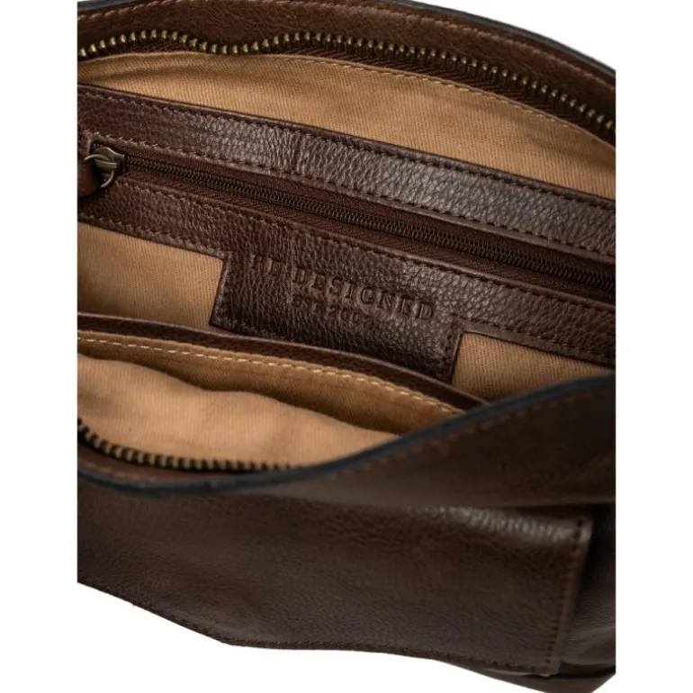 Lækker crossover taske fra RE:DESIGNED i wooksmoke skind. Tasken har et stort lynlåse rum med inddeling indvendigt, samt en lille lomme fortil. Remmen kan justeres