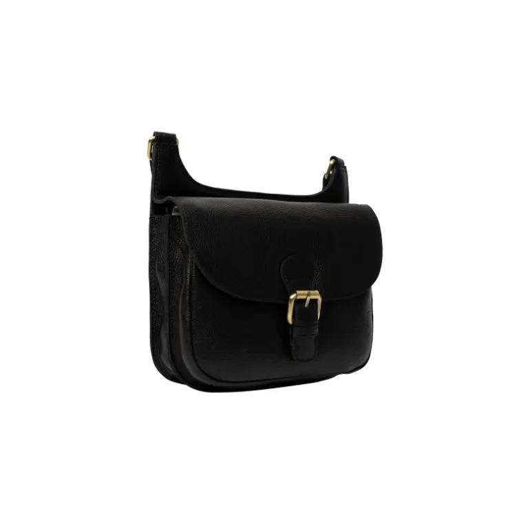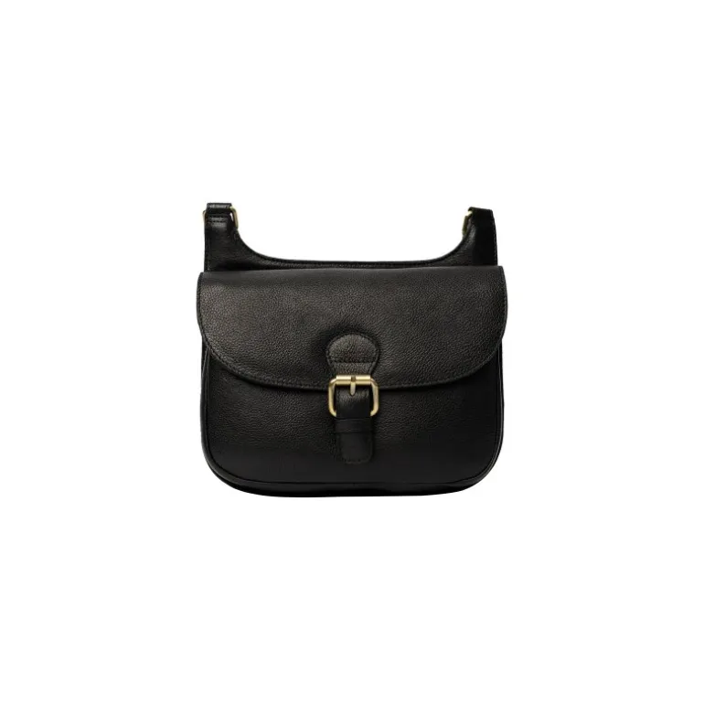 Super fin taske fra RE:DESIGNED i sort skind, med lang justerbar rem. Tasken lukkes med et lille tryk spænde, og har flere rum indvendigt.