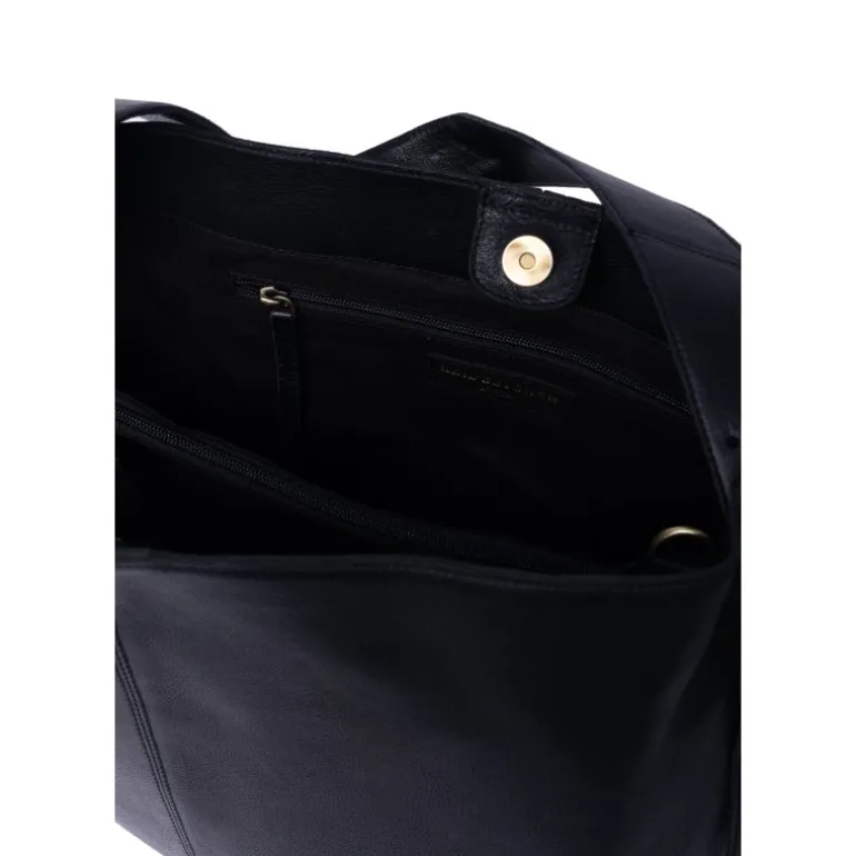 Meget lækker taske fra RE:DESIGNED i sort skind, med masser plads indvendigt
