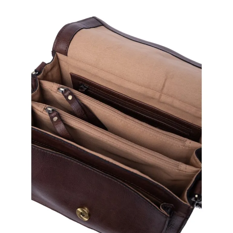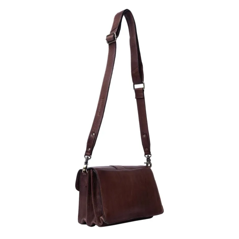 Meget smuk ny taske fra RE:DESIGNED i den lækreste mørkebrune skind. Tasken har et flot spænde fortil, på en magnet lukning. Indvendigt rummer tasken rigtig meget. Flere små rum der åbner sig, samt et lynlåserum i midten. Fantastisk taske der kan justeres i remmen alt efter hvor lang man ønsker den.