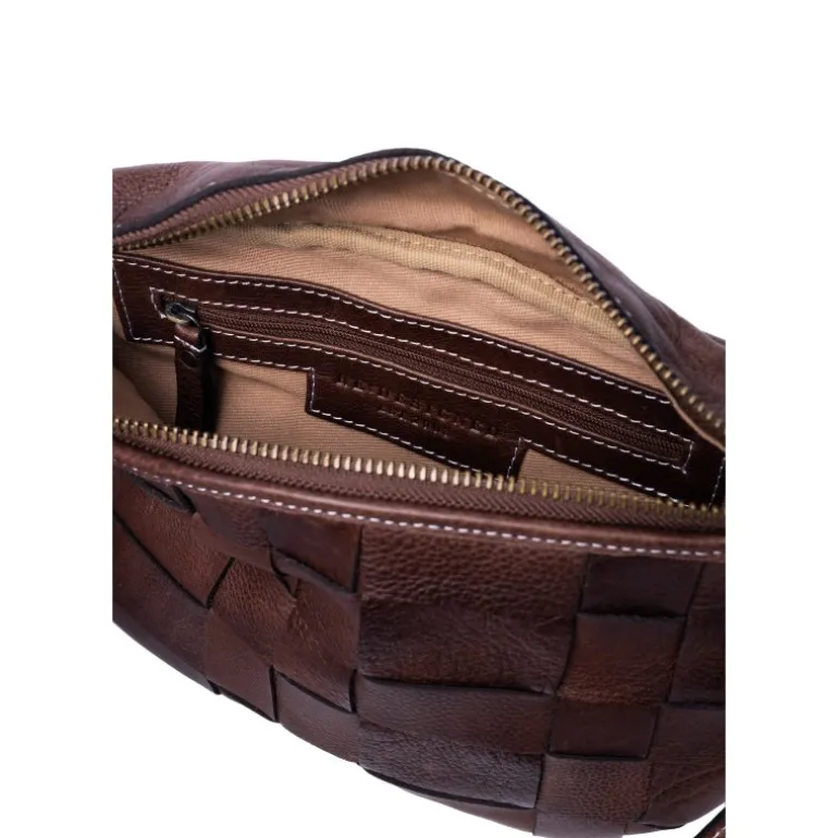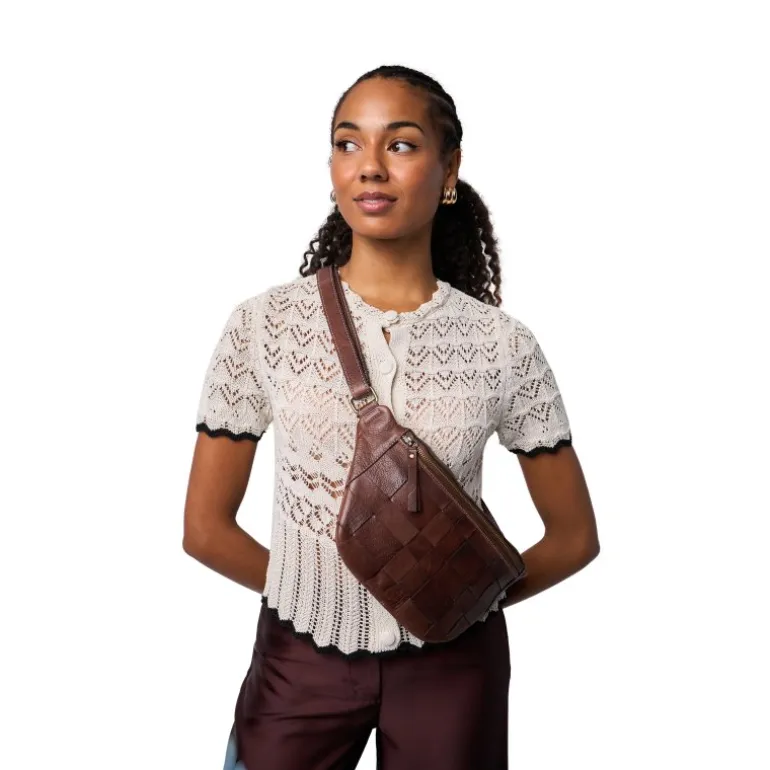 Meget lækker og smart bumbag taske fra RE:DESIGNED i mørkebrun flettet skind. Rummer det perfekte til en hverdags taske.