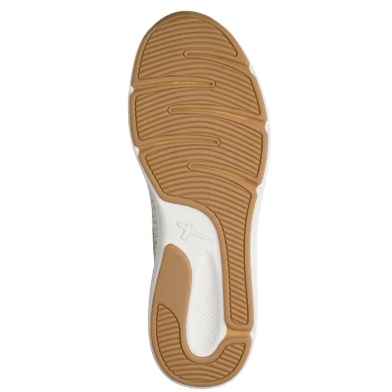 Meget smart og ekstra komfortabel sneakers fra Tamaris. Skoen er i en flot lys beige, med rhinsten der matcher i farven. Snørene er elastiksnøre, så skoen er lige til at stikke i. Ekstra bløde såler indvendigt