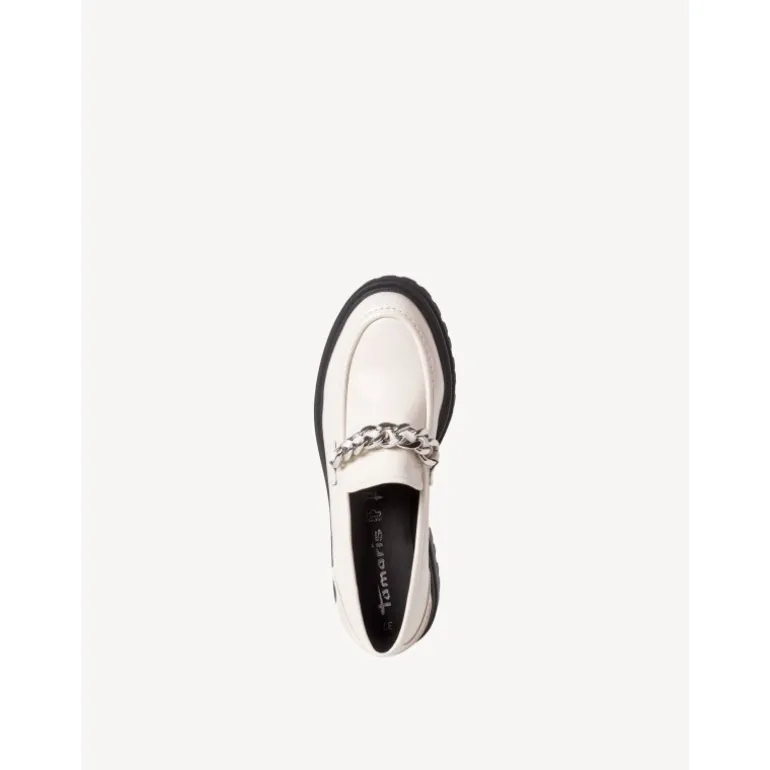 Vores Tamaris bedstseller loafer er nu også lavet i den fineste lyse lak, med sølvkæder. Fantastisk loafer sko med indersåler der er med “Touch it” og er ekstra bløde at have på, og slidsålerne er de super fede chunky gummisåler.