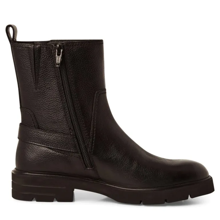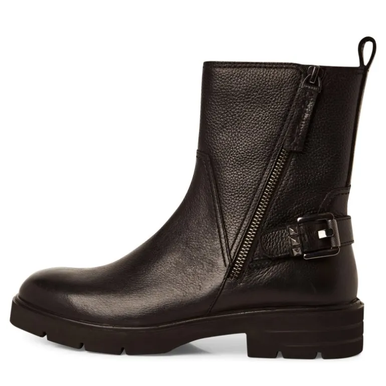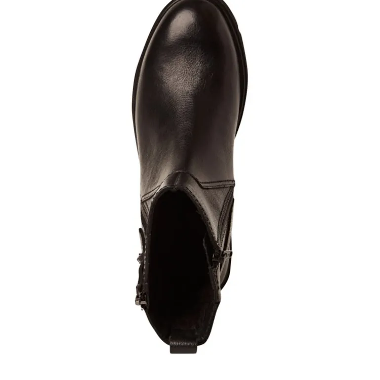 Meget let og komfortabel støvle fra Tamaris, i sort skind. Støvlen har nogle fantastiske letvægtssåler som er meget bløde at have på. Lynlåse på indersiden og detaljer på ydersiden.