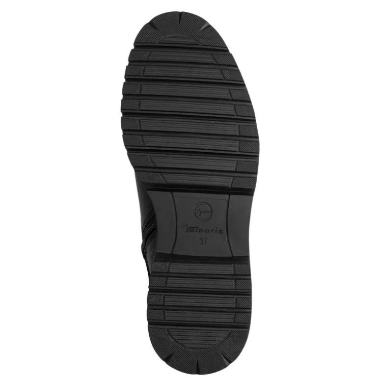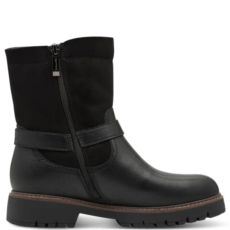 Meget lækker vinterstøvle fra Tamaris i sort skind, med lækkert pelsfoer indvendigt. Støvlen har lynlåse på indersiden og spænder på ydersiden,