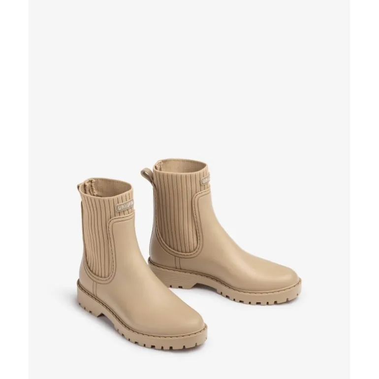 Rigtig lækre og smarte gummistøvler i beige fra Unisa. Støvlerne har en lille “sok elastik” i siderne, og en udtagelig sål med “super soft” teknologi i. Rigtig god komfort, og en pæn gummistøvle.