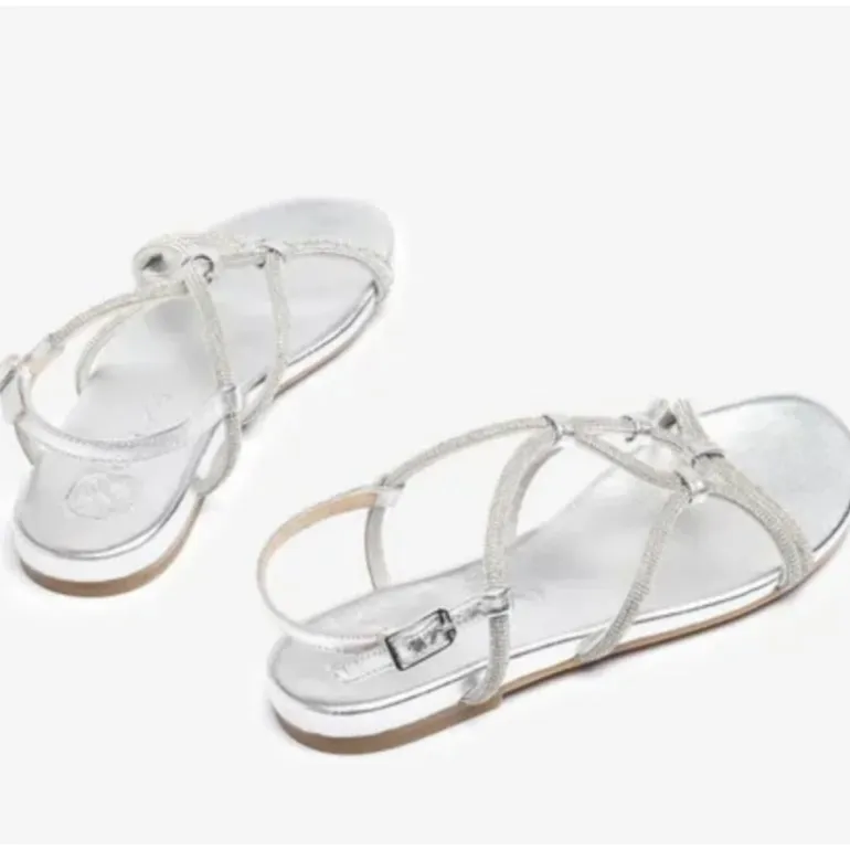 Meget lækre bløde sandaler fra Unisa i sølv skind. Sandalen har de smukkeste glitter remme over foden, og en lækker blød sål i skind.