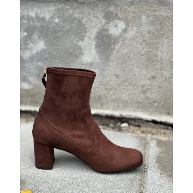Lækker støvle fra Unisa i brun, med en god komfortabel hæl. Støvlen er skindforet, og skaft materialet er i stretch tekstil, som gør at støvlen sidder perfekt til benet.