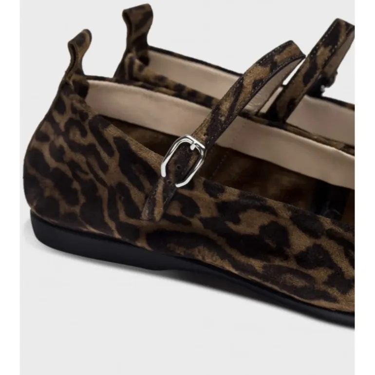 Meget lækker og blød ‘Mary Jane’ ballerin sko fra Wonders. Skoen er i en flot leopard printet ruskind, med en lille justerbar rem over foden. Perfekt til bare fødder og en lille fin strømpe.