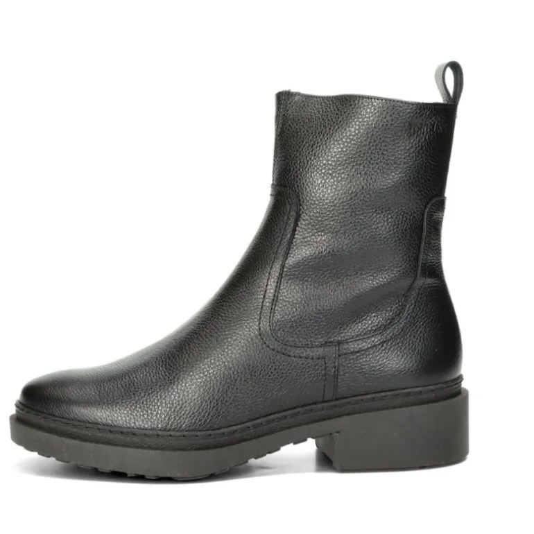 Super lækker vinterstøvle i sort skind, med pelsfoer indvendigt. Støvlen har lækre gummisåler, som er slidstærke og isolerer godt.