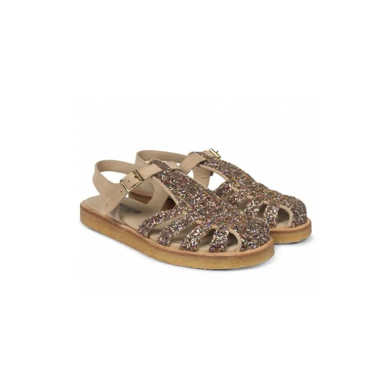 De populære fantastiske lukkede glittersandaler i multiglitter fra Angulus, med den bedste og mest bløde komfort. Sålerne er rågummi, og er meget fleksible. Sandalen er lukket fortil, og åben bagtil hvor den lukkes med et justerbart spænde.