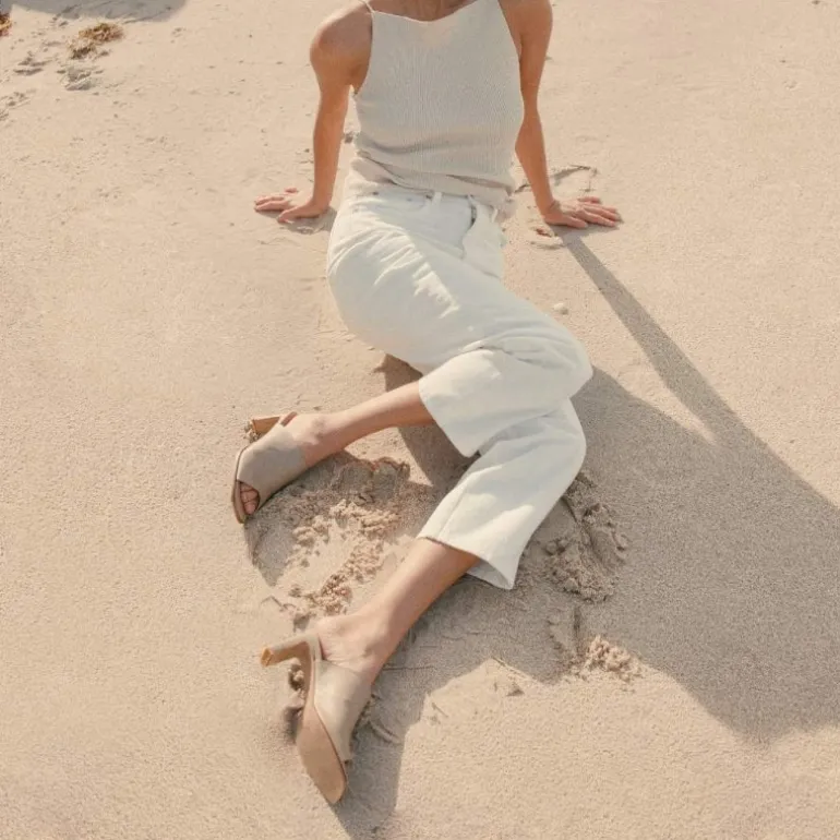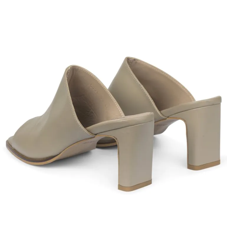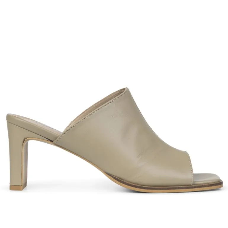 Rigtig flot slip in sandal fra Angulus i beige skind, med en elegant hæl på 6 cm. Sandalen kan styles op og ned efter behov. Sidder godt fast på foden.
