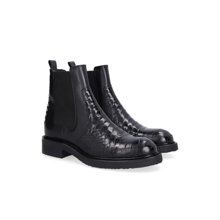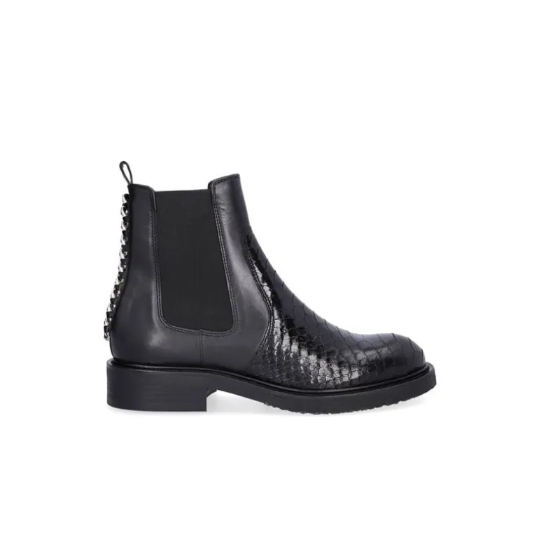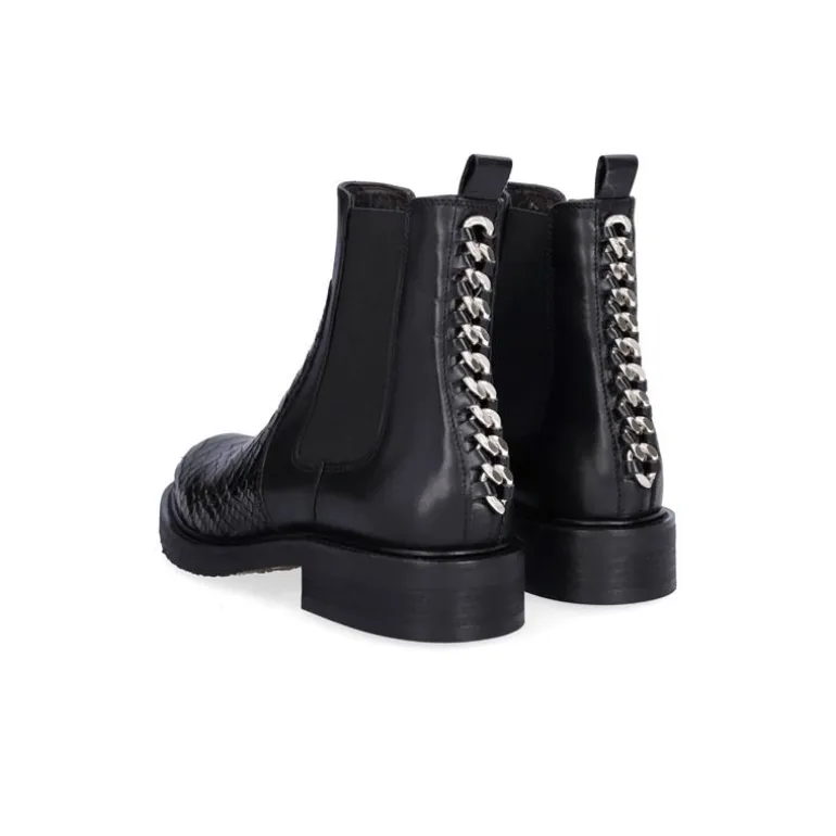 Meget smart og lækker støvle fra Billi Bi, i sort præget skind. Støvlen har elastik i siderne, og en dekorativ sølvkæde bagtil. Giver en super smart effekt, og kan bruges til både hverdag og fest. Støvlen har rågummisål på forreste stykke, hvilket giver en god komfort.