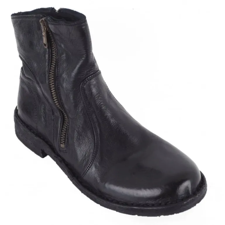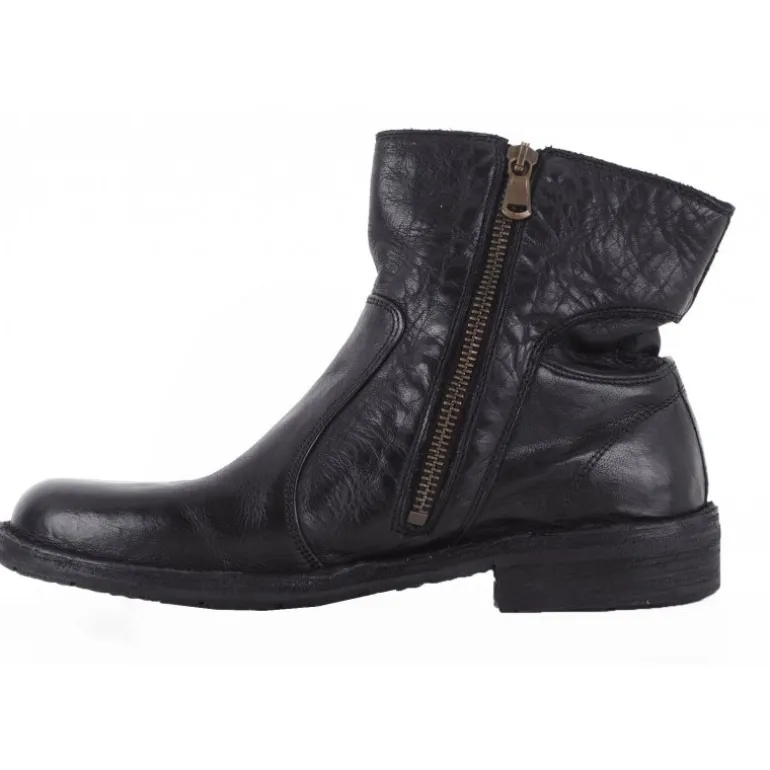 Ekstrem lækker støvle fra Bubetti i sort skind. Skindet er vasket, hvilket gør, at støvlen får et lækkert råt look, og skindet bliver endnu mere blødt og lækkert med tiden. Støvlen har lynlåse i begge sider, med et skindstykke på bagsiden, derfor kan lynlåsen også stå halvt åbent.