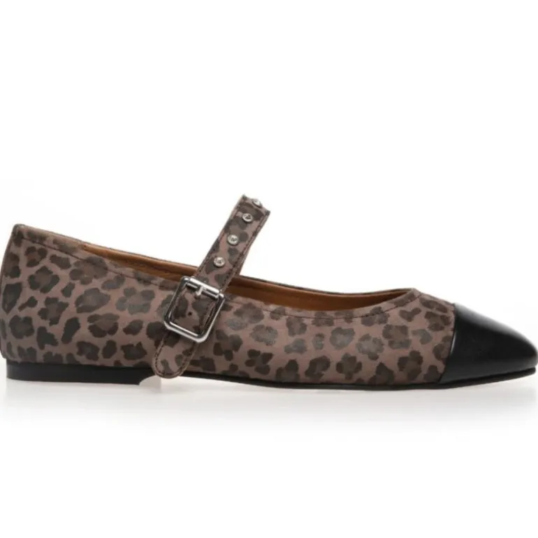 Meget fin og populær ballerina sko fra Copenhagen Shoes. Skoen har en fin rem henover foden, og er i det flotteste leo print.