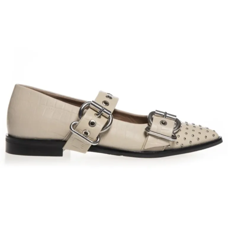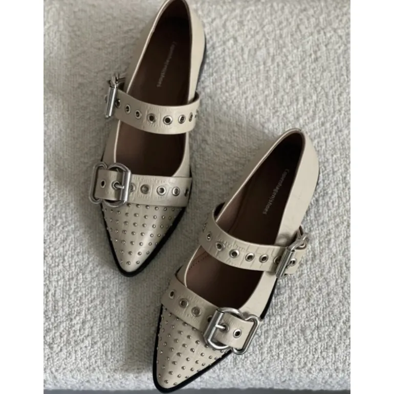 De fineste sko fra Copenhagen Shoes i beige skind, med spænder og nitter. Pasformen er helt perfekt, og sidder godt på foden.