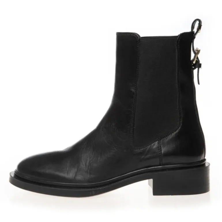 Klassisk og elegant støvle fra Copenhagen shoes i sort skind. Støvlen har elastik i siderne, og har et elegant spænde bagpå.