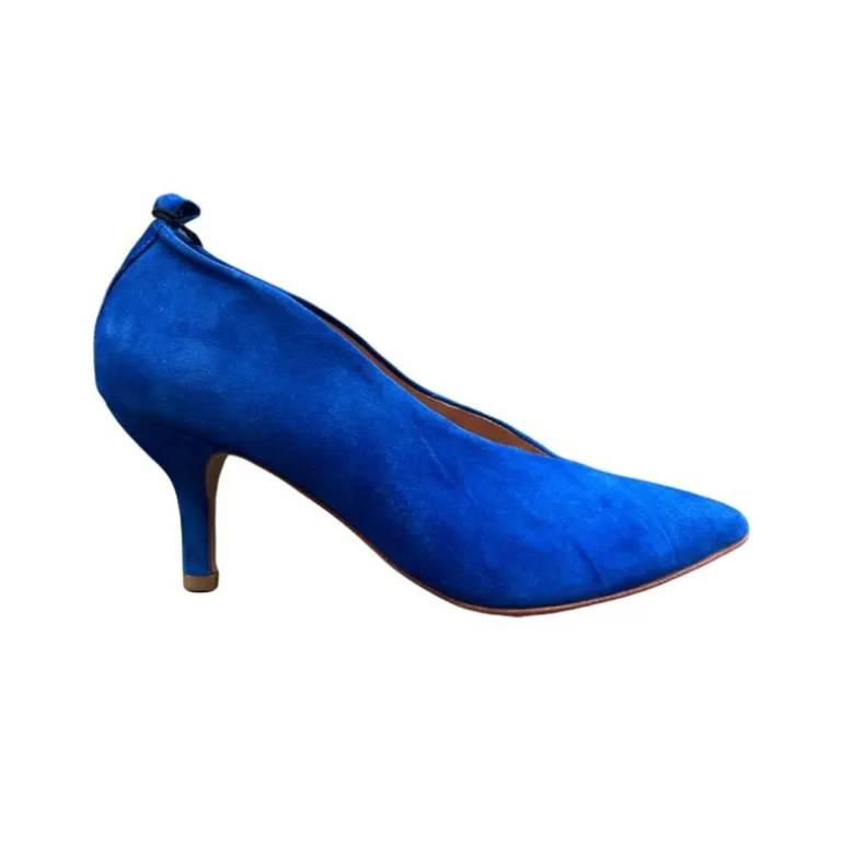 Smukke pumps fra Pavement i den smukkeste blå ruskind, og en super flot udskæring fortil, der sidder rigtig godt på foden, og dækker også knyster. Rigtig god hælhøjde på 6 cm. Fås også i sort ruskind