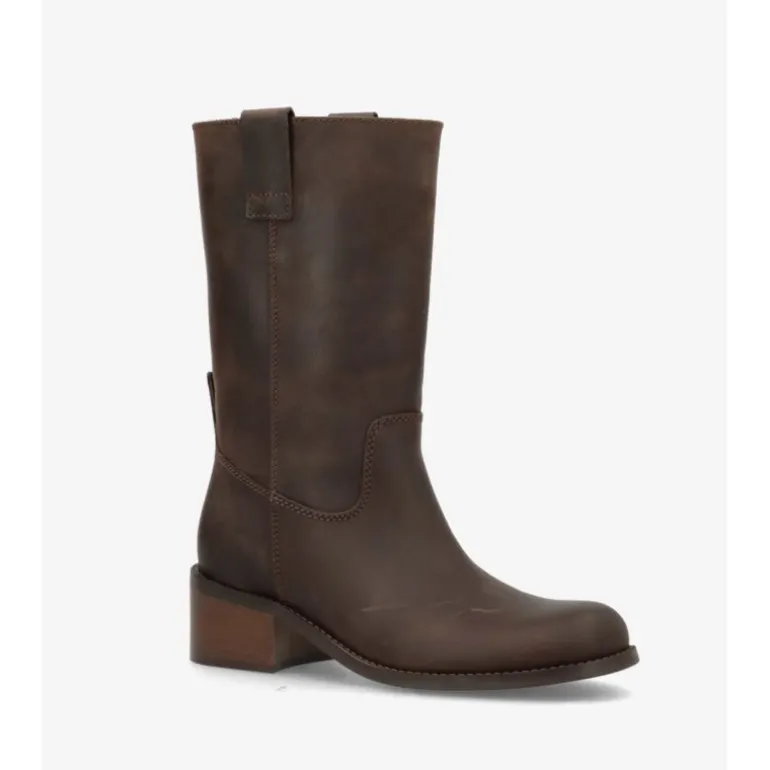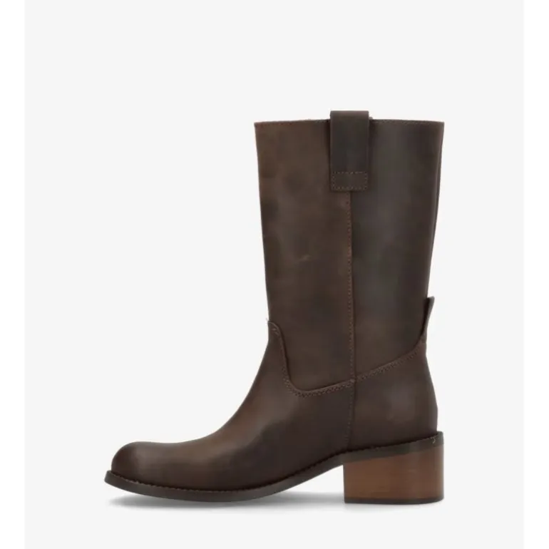 Super fed 3/4 lang støvle fra Phenumb i mørkebrun skind. Støvlen er en løs støvle man blot trækker på. Super fedt look, og er det udtryk der ses allermest pt.