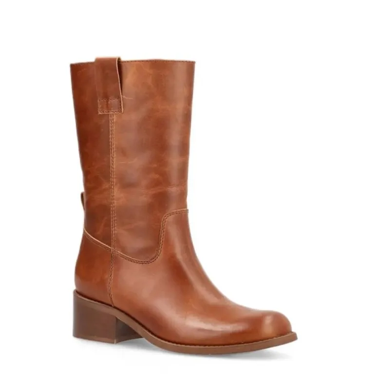 Super fed 3/4 lang støvle fra Phenumb i cognac skind. Støvlen er en løs støvle man blot trækker på. Super fedt look, og er det udtryk der ses allermest pt.