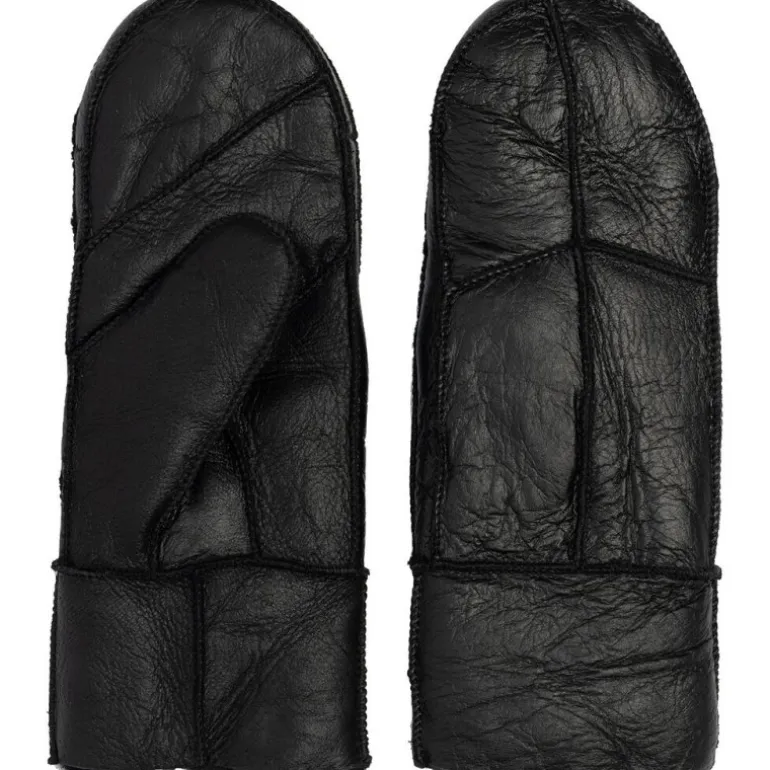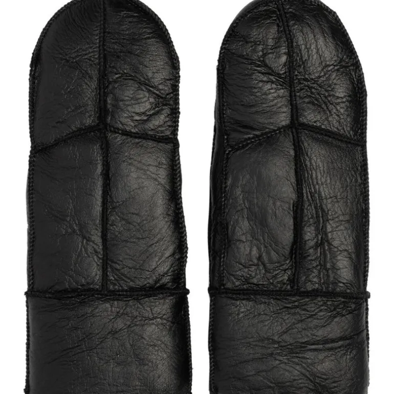 Skønne skindluffer i sort, med pelsfoer indvendigt. Øverste stykke af luffen kan foldes ned og op, så man får en detalje med pelskant