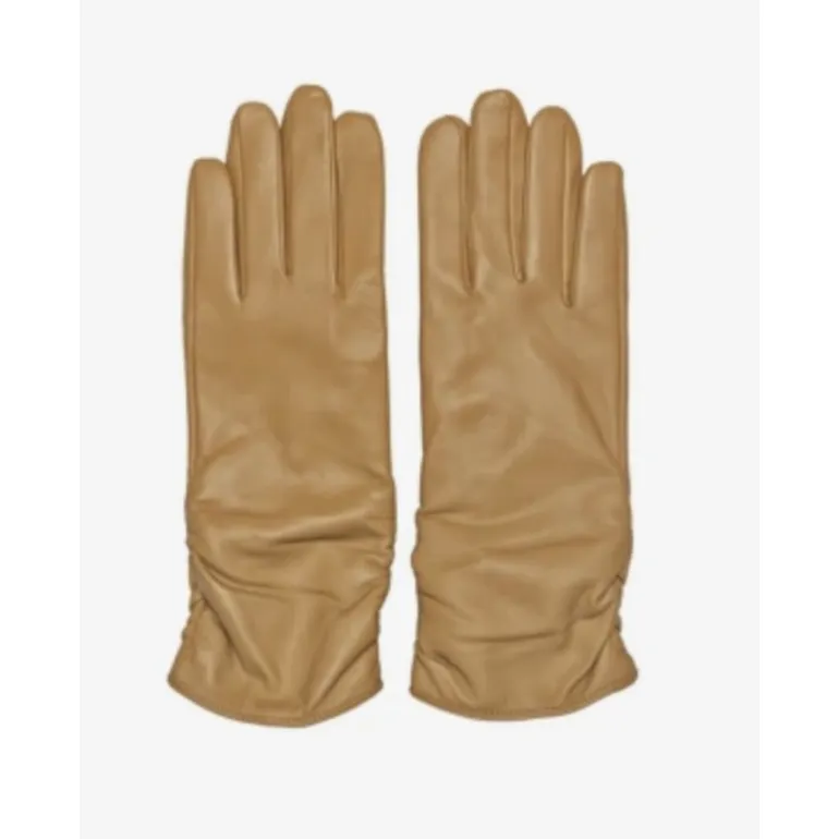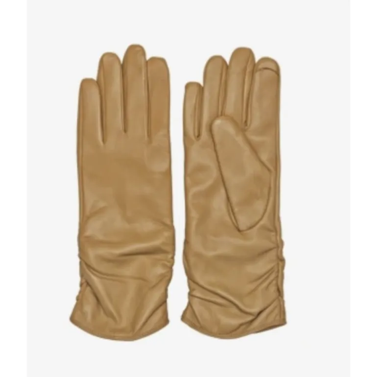 Meget lækre skindhandsker fra RE:DESIGNED i det skønneste bløde læder i beige skind. Handsken er meget klassisk og elegant, og går lidt længere op på armen, med de fineste “rynke” detaljer. Handsken har fleece foer, og derudover er der touch funktion, så man kan bruge dem på sin smartphone, uden at tage handskerne af.