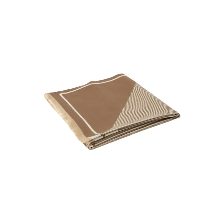 Meget lækker blødt halstørklæde fra RE:DESIGNED i et flot beige mønstret stof. Rigtig nemt og godt at sætte.