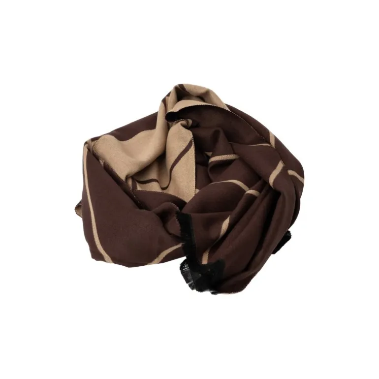 Meget lækker blødt halstørklæde fra RE:DESIGNED i et flot brun mønstret stof. Rigtig nemt og godt at sætte.