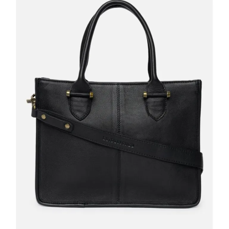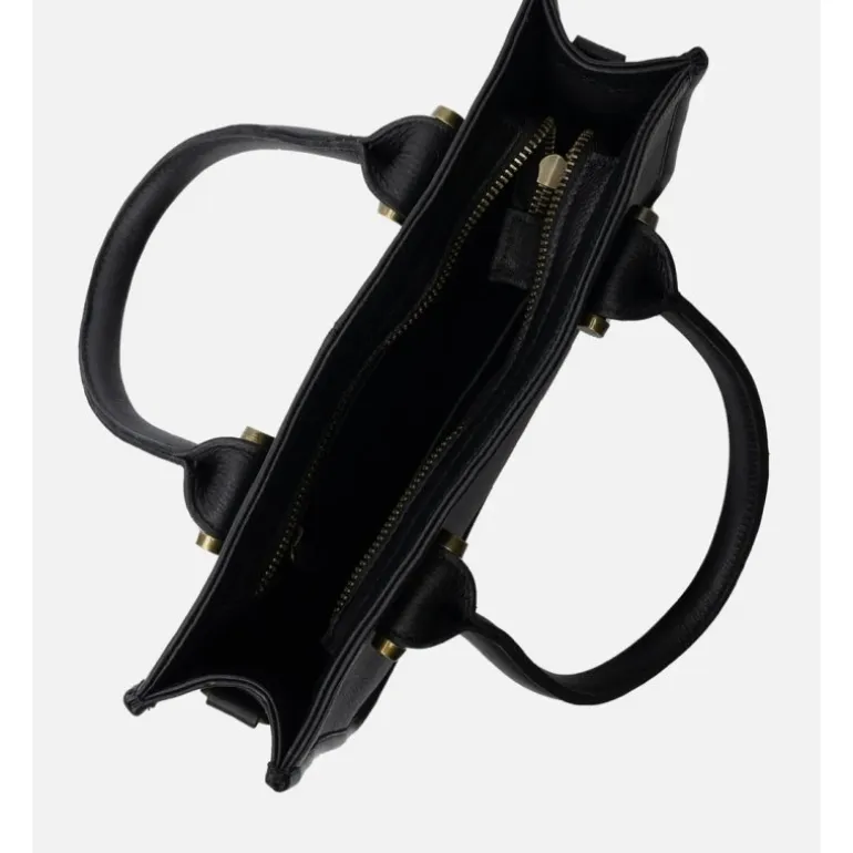 Flot og elegant taske fra RE:DESIGNED i sort skind, med en lynlåse lukning.