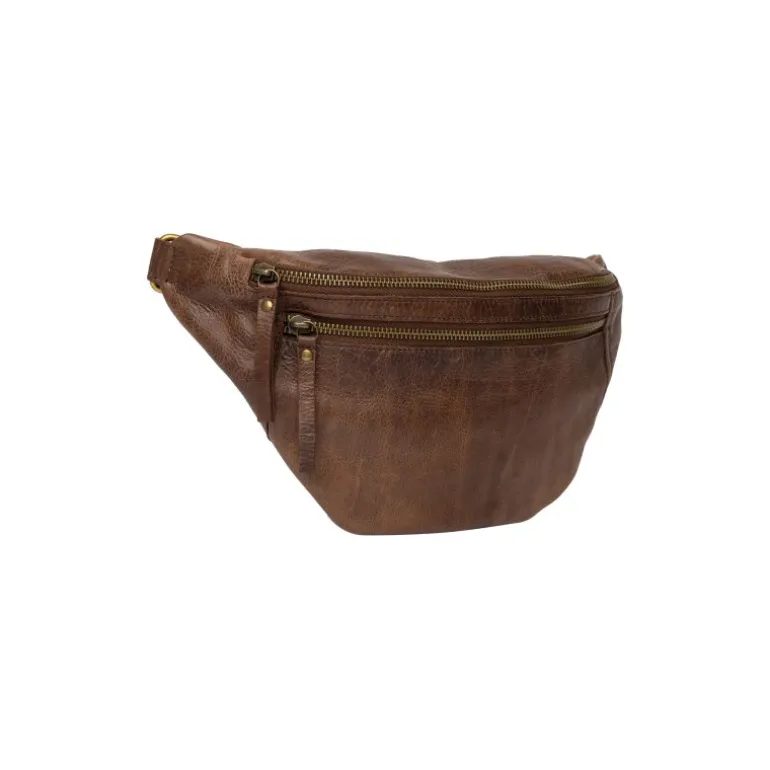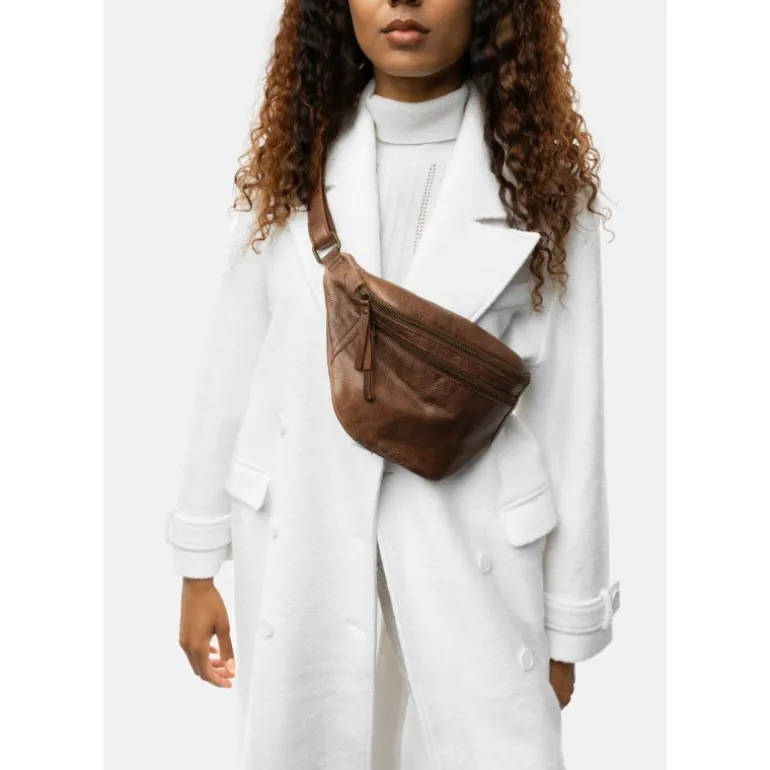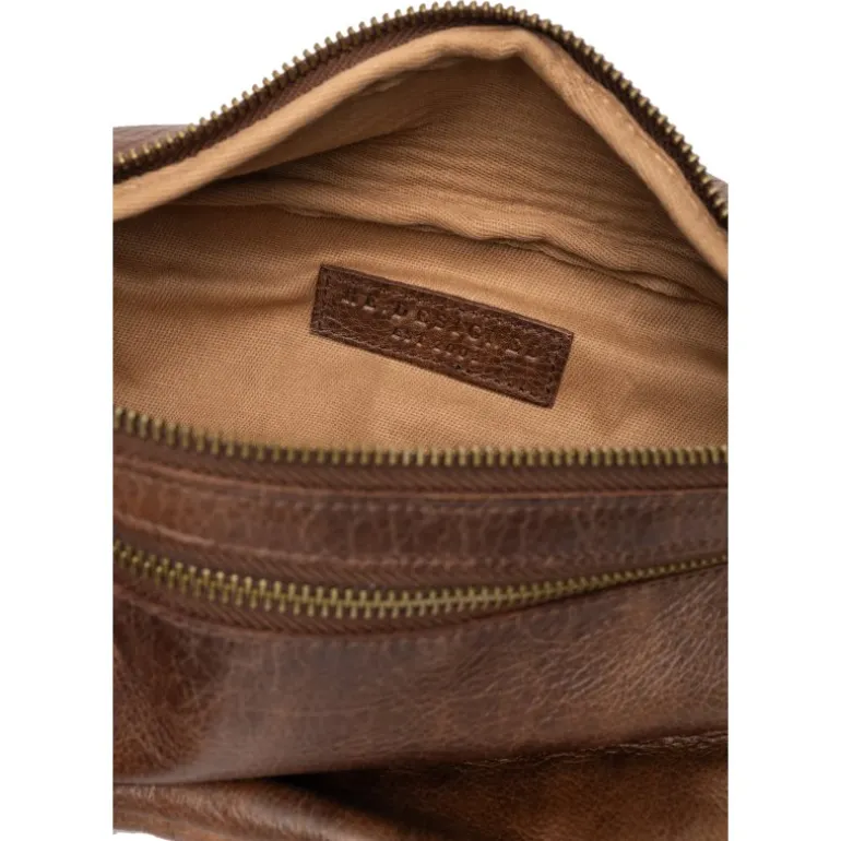 Super lækker og rå Bumbag taske fra RE:DESIGNED i en flot mørkebrun skind. Tasken har to rum med lynlåse.