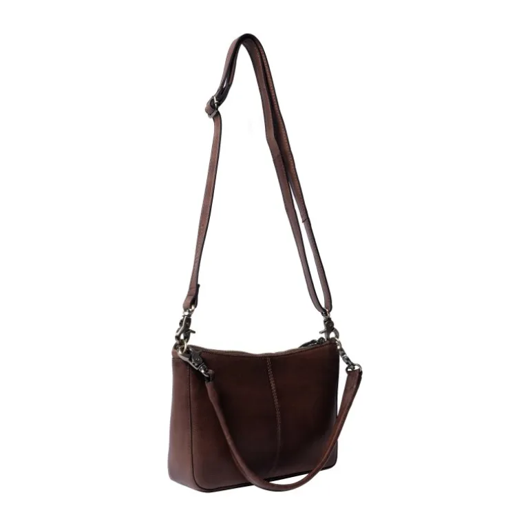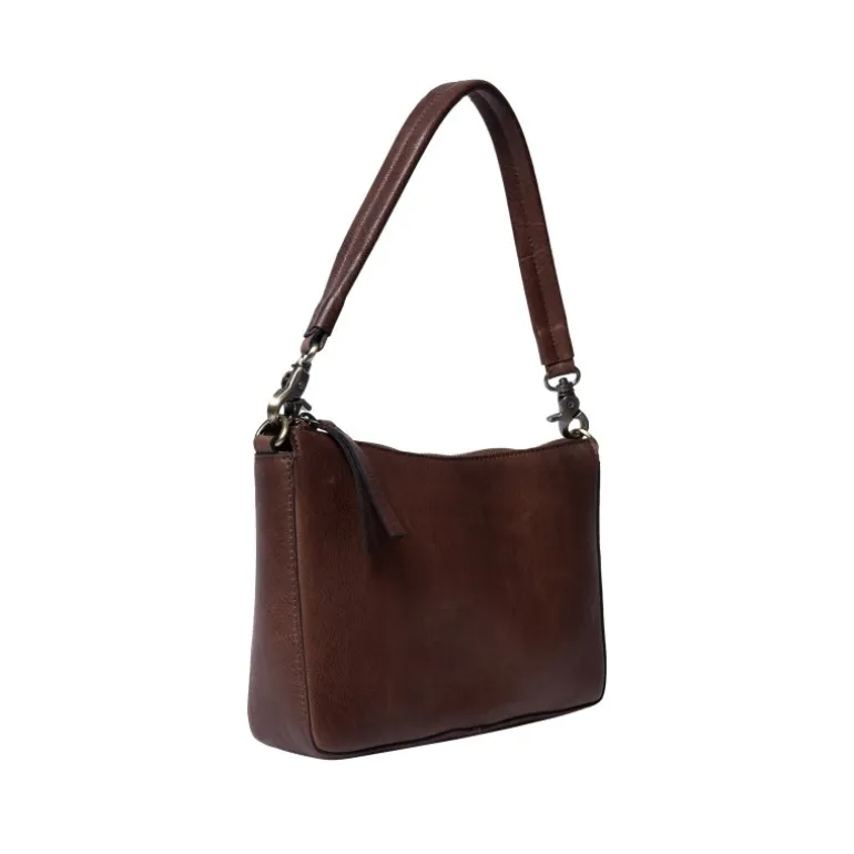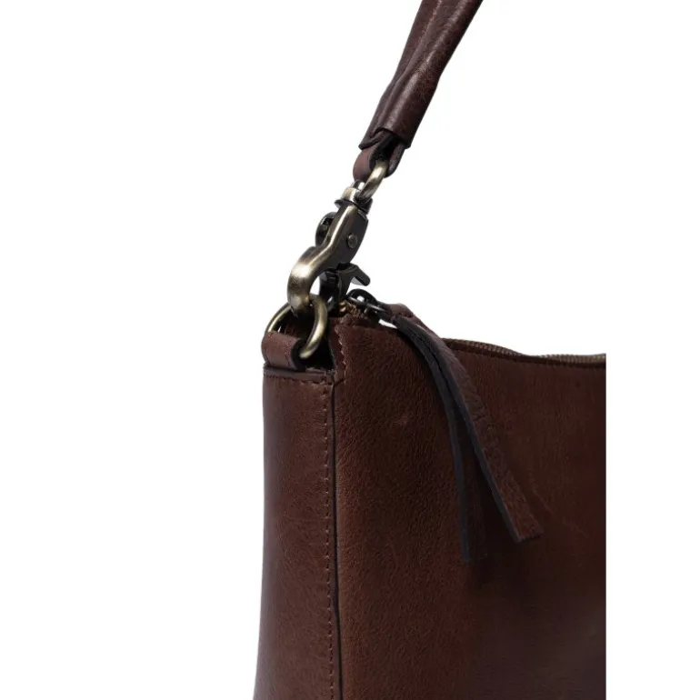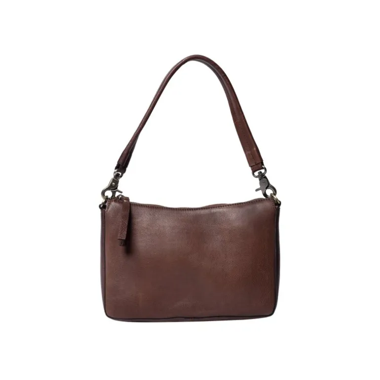 Klassisk taske fra RE:DESIGNED i en flot mørkebrun læder, med en lille skulderem, samt en crossover rem. Kan bruges som både hverdagstaske, og pæn taske.