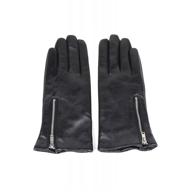 Meget lækre skindhandsker fra RE:DESIGNED i det skønneste bløde læder i sort. Handsken har en fin lynlåse som smart detalje.