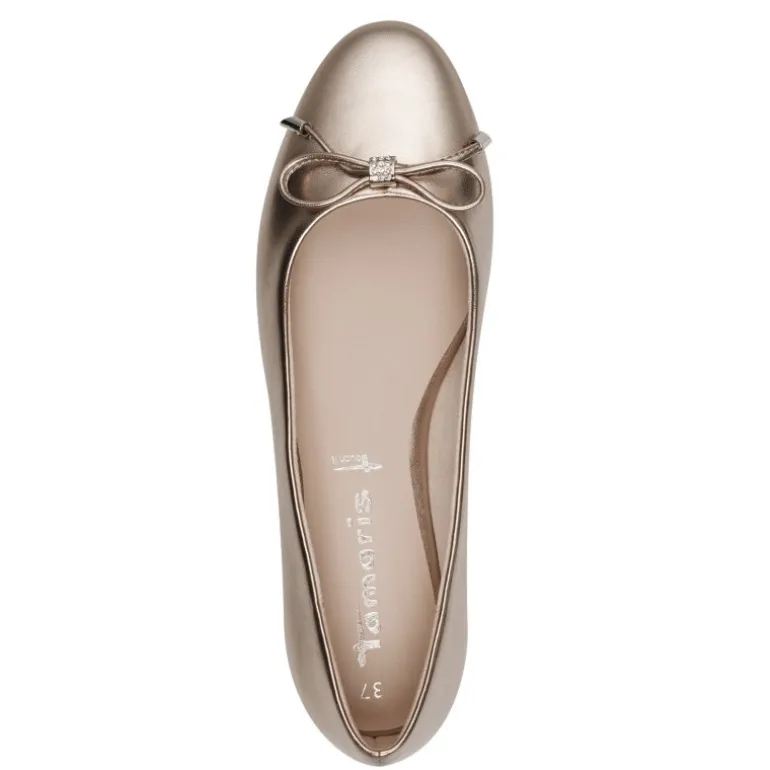 Super sød ballerina sko fra Tamaris i guld, med sløfte fortil samt en lille similisten i midten, som giver en utrolig fin og smuk detalje. Lækre bløde såler, og kan bruges til alting,