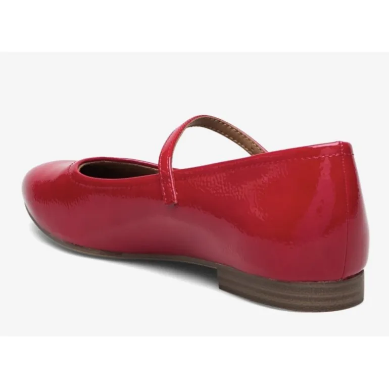 Super fine ballerina sko med rem henover foden, i en flot rød lak. Såler er meget bløde, og har en fantastisk komfort.