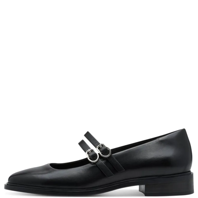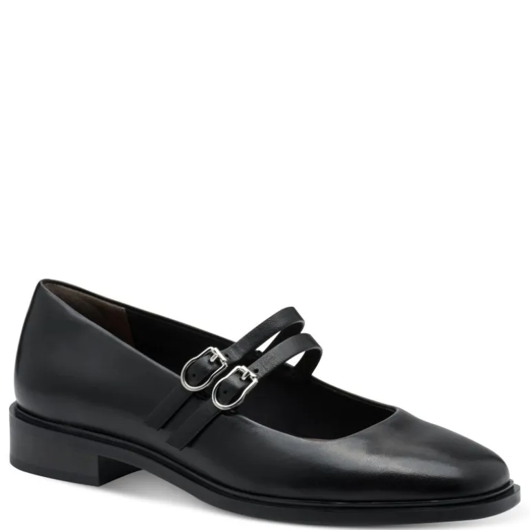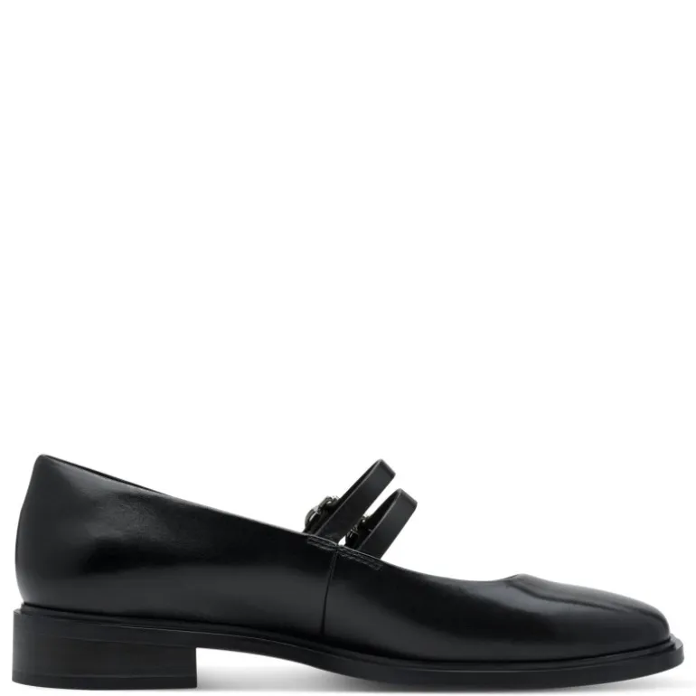 Meget lækre og elegante “Mary Jane” ballerina sko i sort skind. Skoen har to flotte remme over foden, og sidder perfekt. Sålerne er med ekstra bløde indersåler. Super flotte til både bar fødder, og med en strømpe i.